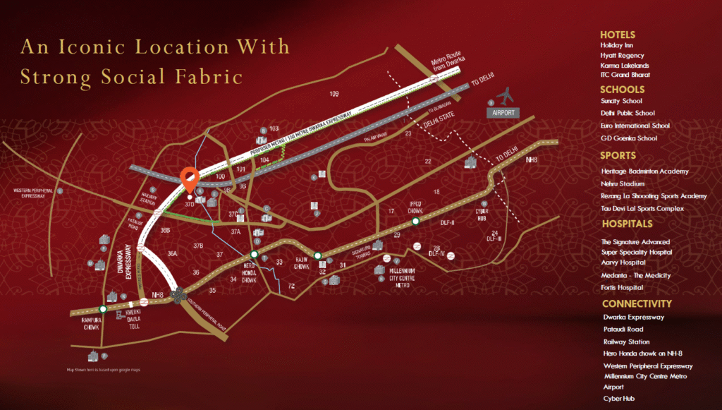 - NH-08 : 3.1 KMS, Dwarka Expway : 750 MTRS, 10 km drive to IMT Manesar